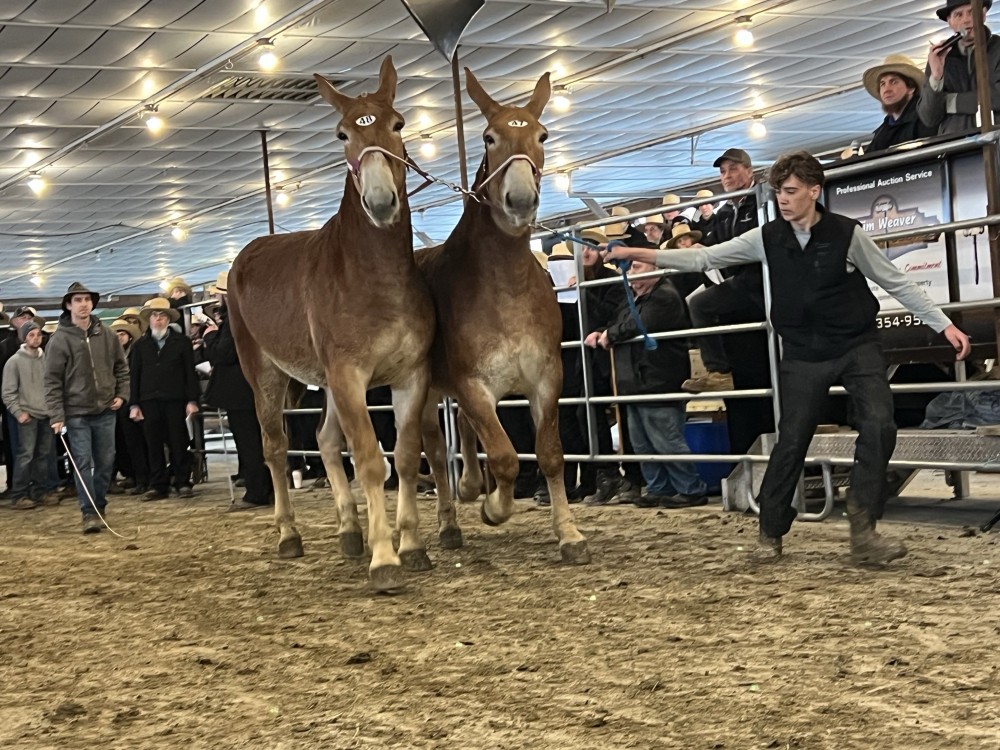 At the January Jonas King Mule Sale, Omar Smoker had a family event and asked to have the last slot of the draw for the order of the mules to sale. He ended up taking most of them back home due to low bids.
